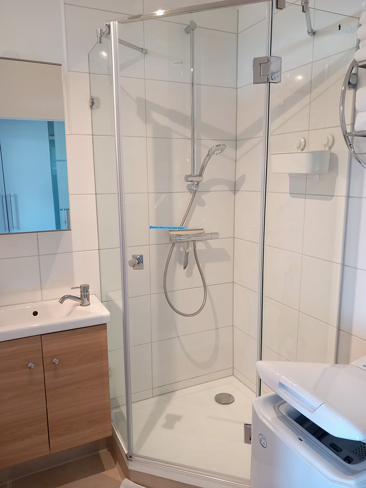 Das moderne Duschbad rundet das Angebot ab und bietet Ihnen einen erfrischenden Start in den Tag.